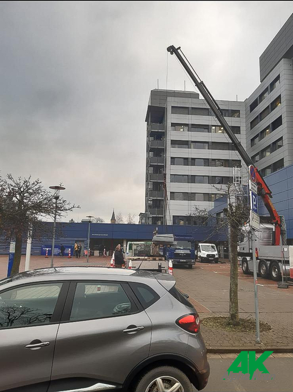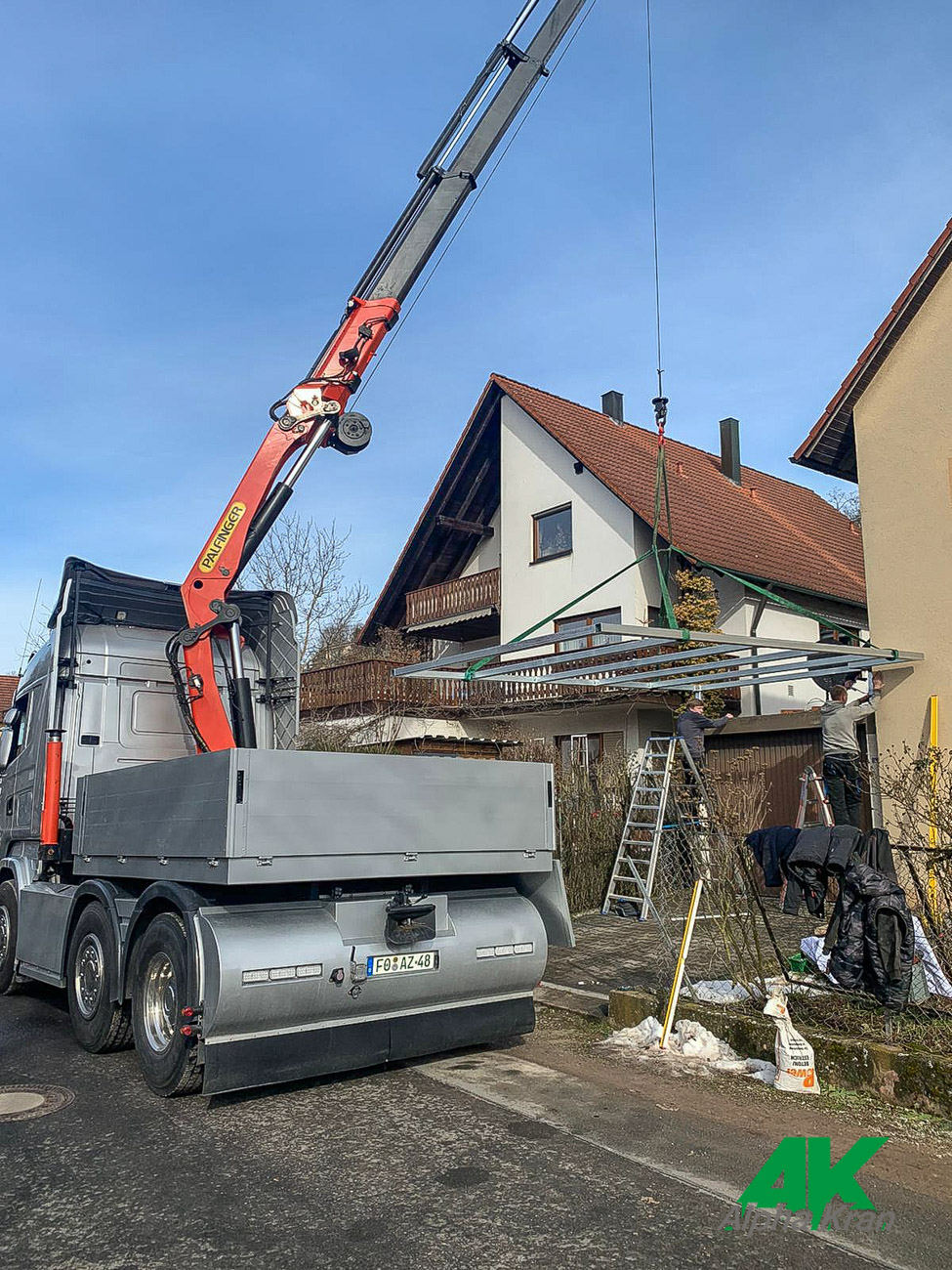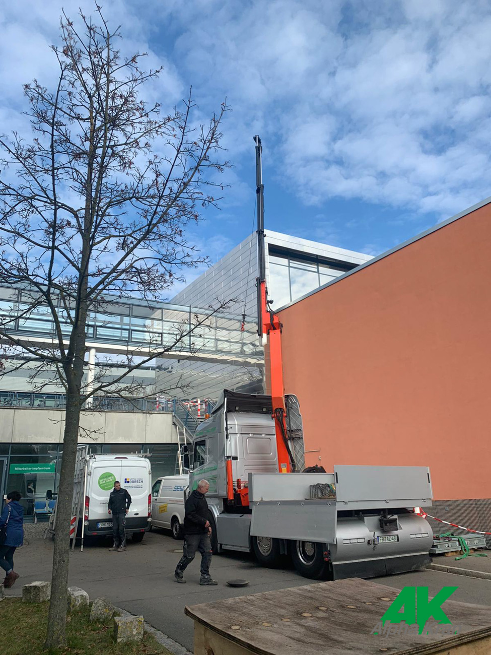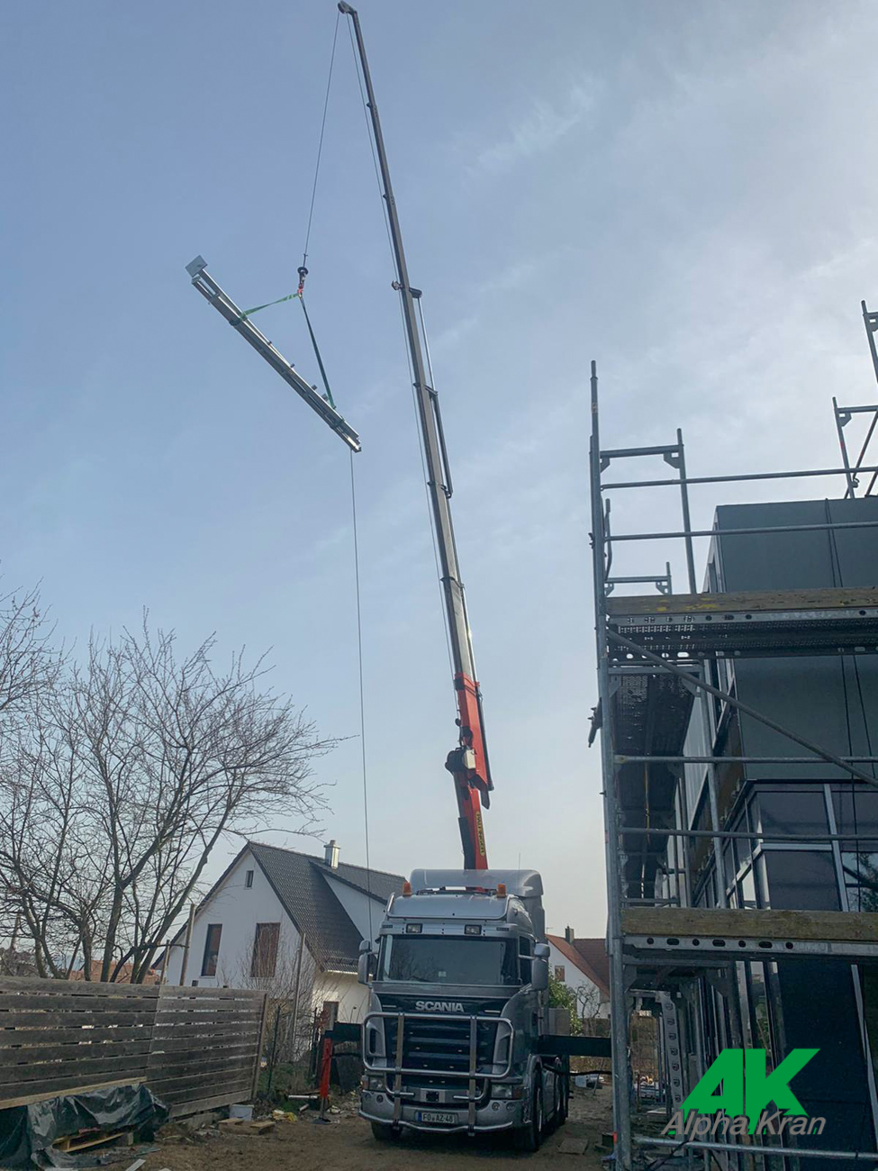 Mit unserem 3achs SCANIA mit Palfinger Kran können wir Lasten bis zu 5t im Abstand von 3 Metern heben, 400kg bei bis zu einer Entfernung von 25m.